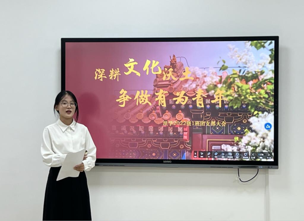 近日,文法学院法学2022级1班团支部开展“深耕文化沃土 争做有志青年”主题团日活动,活动分为理论宣讲、学习研讨、品读原文三个部分。