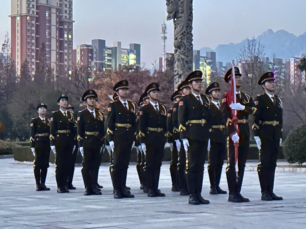 清晨迎着朝阳,国旗护卫队迈着铿锵有力的步伐走向国旗台。在雄壮的《义勇军进行曲》中,鲜艳的五星红旗迎风飘扬,全体员工面向国旗庄严肃立,行注目礼并唱国歌。