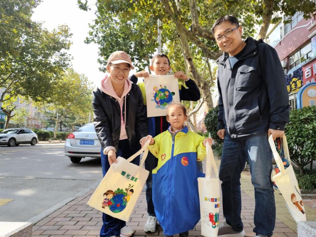随后,志愿者们与孩子们一起完成环保袋的涂鸦创作,由党员志愿者带领社区儿童将这些环保袋赠予社区居民,让绿色的种子在社区萌发,鼓励大家践行绿色生活理念。活动的最后,党员志愿者们与社区青少年家庭成员一起进行了环境清洁行动,以行动发出环保宣言,号召共同努力为地球增添一抹亮丽的绿色。