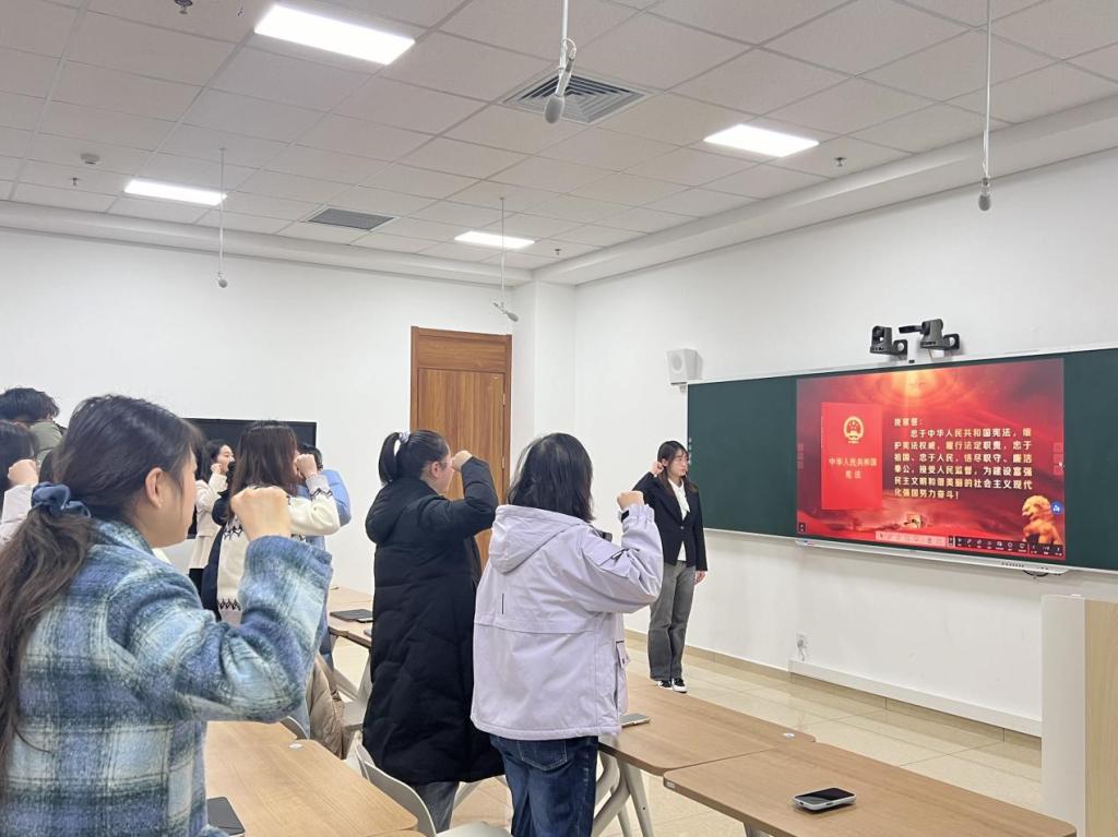 随后,本期“青马工程”基础班开展了第一次理论学习即宪法日主题教育。青马学员代表上官佳诺带领全体学员进行宪法宣誓。