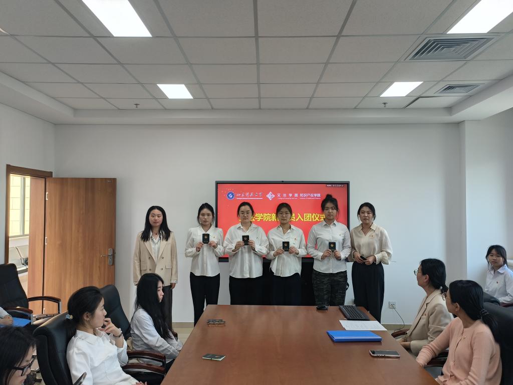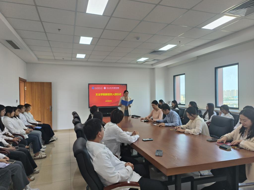 宣读新团员发展名单后,全体辅导员为新团员佩戴团徽并颁发团员证。法学2024级3班张亚楠带领新团员们面向团旗庄严宣誓,正式肩负起团员使命。