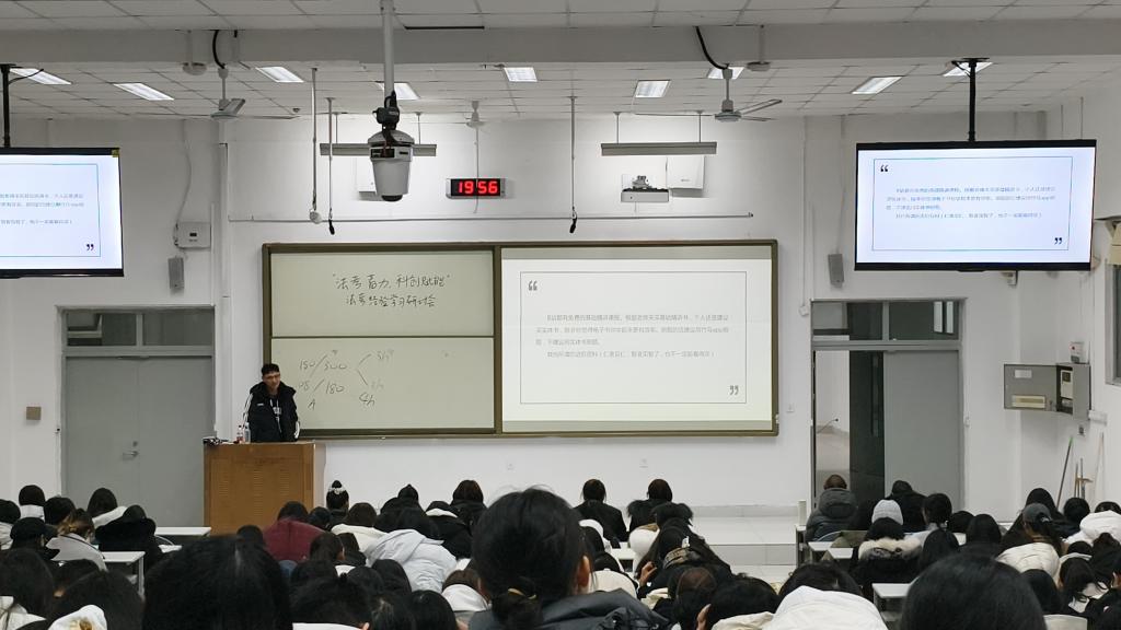 活动邀请两位已通过法律职业资格考试的研究生作为分享嘉宾。他们结合自身备考实战经验,对法考各科目的复习节奏与策略进行了系统且细致的梳理。针对复习方式,建议同学们集中时间进行课程学习,规避碎片化学习模式,更好地构建知识体系,提升学习效果。关于备考方法,主讲人提醒同学们要尽早开展模拟练习,检验自身对知识的真实掌握程度,找出知识盲点并及时弥补。在备考过程中,要注重做好笔记整理,加深对知识点的理解,并结合实际案例进行分析,做到学以致用。此外,他们还针对备考资料、课程的选择给出了实用建议,为在场同学提供了清晰的备考指引。