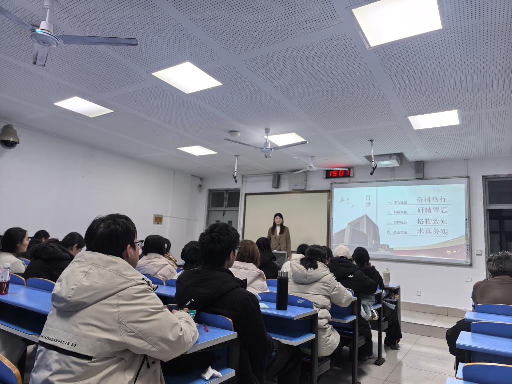 分享会上,来自不同专业的优秀学子结合自身经历,为新生们带来了全面且实用的学业规划建议。法学专业兰煜琦强调了夯实专业基础的重要性,每一门课程都是构建知识体系的关键基石。她还以自身参与学科竞赛和科研项目的经历为例,阐述了提升综合素质、拓宽学术视野的重要性,激励同学们尽早锚定目标,持之以恒地为之努力,在学业道路上稳步前行。李婧漪对大学学业发展的多维路径进行了介绍。在课程学习方面,提醒同学们要注重知识的系统性和连贯性;在课外拓展上,鼓励大家积极参与各类学术讲座和社会实践活动;在技能提升方面,强调了语言表达、逻辑思维等能力培养。她还结合自身经历,在时间管理和学习效率提升方面提供了实用建议。赵欣雨从学业规划和竞赛参与两个方面进行了分享。在学业规划上,她建议同学们制定短期和长期目标,并根据实际情况及时调整;在竞赛参与方面,她鼓励大家突破自我,勇于尝试不同领域的竞赛,锻炼自己的综合能力,为未来的职业发展打下坚实基础。汉语言文学专业薛晓雨不仅介绍了专业学习的方法和技巧,还特别提醒同学们要注重培养良好的学习习惯和心态。她表示,大学学习是一个自主探索和自我提升的过程,遇到困难和挫折时,要积极调整心态,保持乐观向上的精神风貌,坚持不懈地追求学业进步。