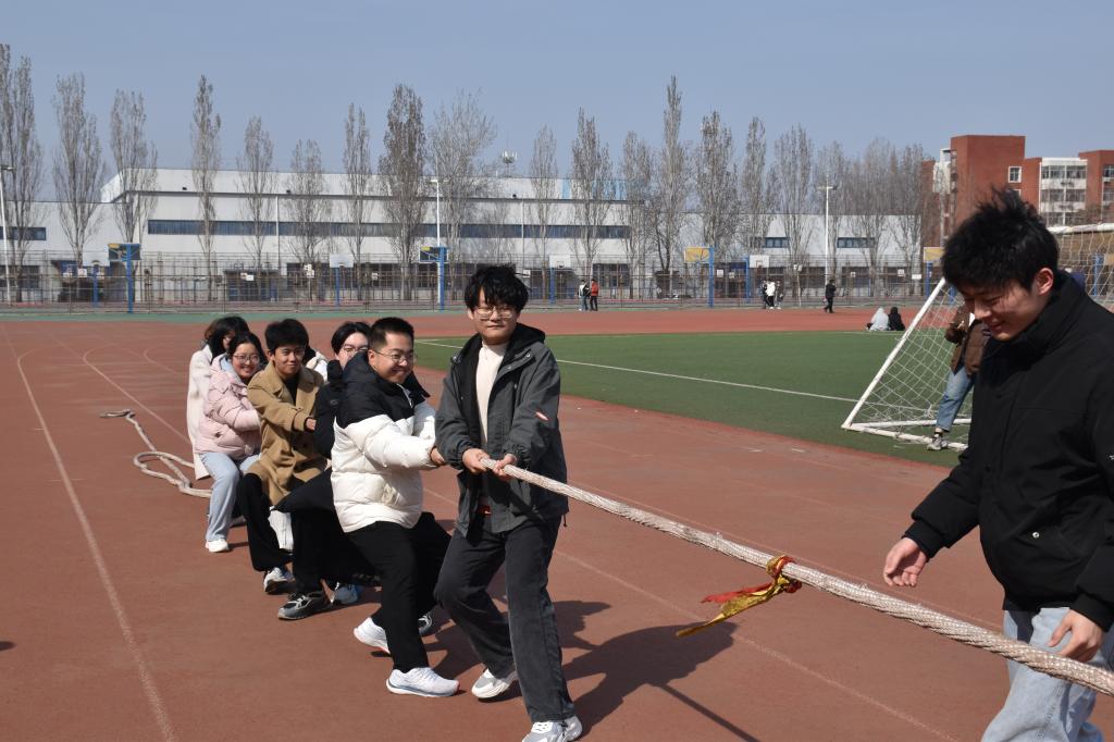 活动当天,2025级各班参赛选手满怀热忱,提前抵达场地进行热身准备,大家精神饱满,现场气氛热闹非凡。本次活动共设置三人四足、投壶、蹴鞠、跳大绳、拔河等趣味竞赛项目。下午2点,活动正式拉开帷幕。三人四足项目中,选手们默契配合,喊着整齐的口号,步伐一致地向前冲刺;投壶场地,同学们屏气凝神,手持箭矢,每一次投中都引来观众喝彩;蹴鞠区域,选手们灵活带球、巧妙传球,重现传统体育风采;跳大绳比赛中,同学们身轻如燕,在快速甩动的长绳中穿梭跳跃;拔河赛场上,各班队员紧握绳索,齐心协力,展现出强大的团队凝聚力。
