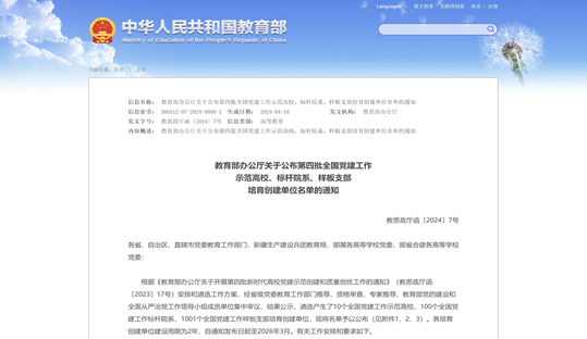 近日,教育部办公厅公布了第四批新时代高公司党建示范创建和质量创优工作遴选结果,公司法治教育党支部入选“全国党建工作样板支部”培育创建单位,标志着公司在全国党建双创工作方面实现“零”的突破!